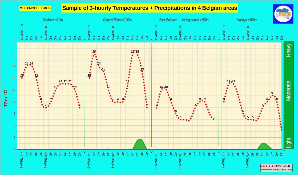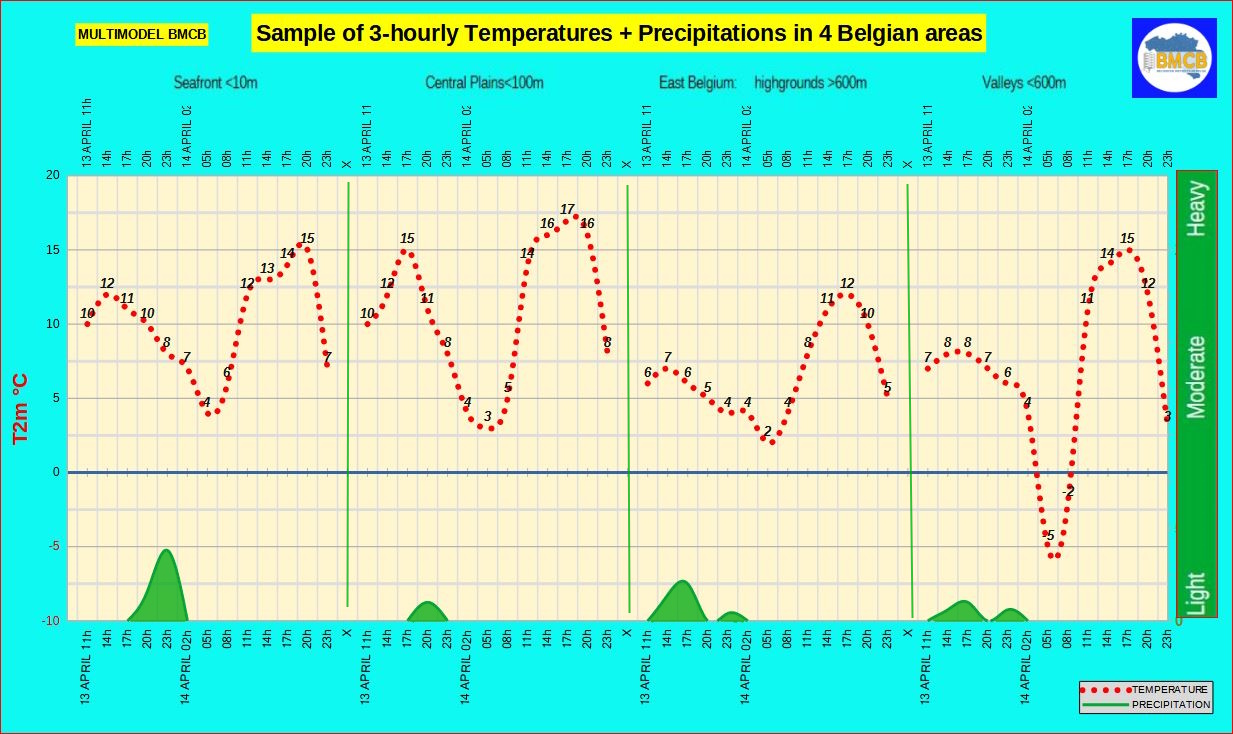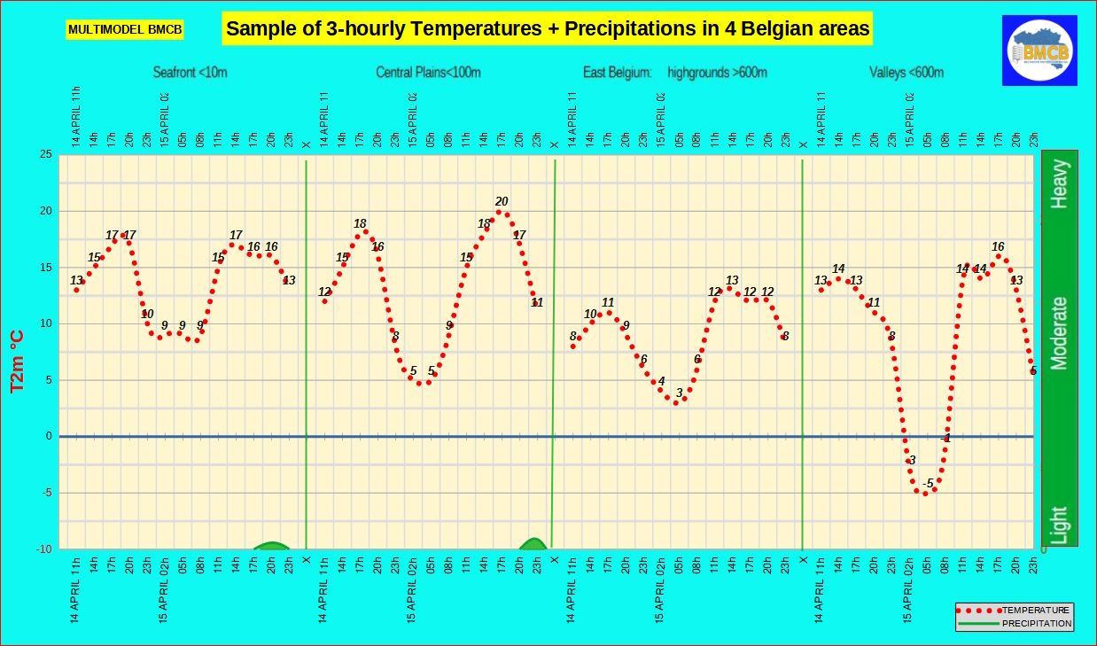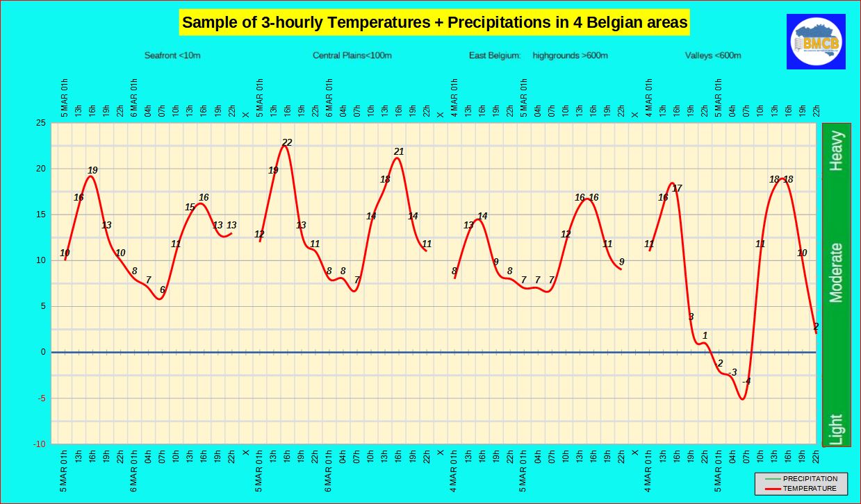 Forecast of the range of temperatures, precipitations + general type of weather in Belgium