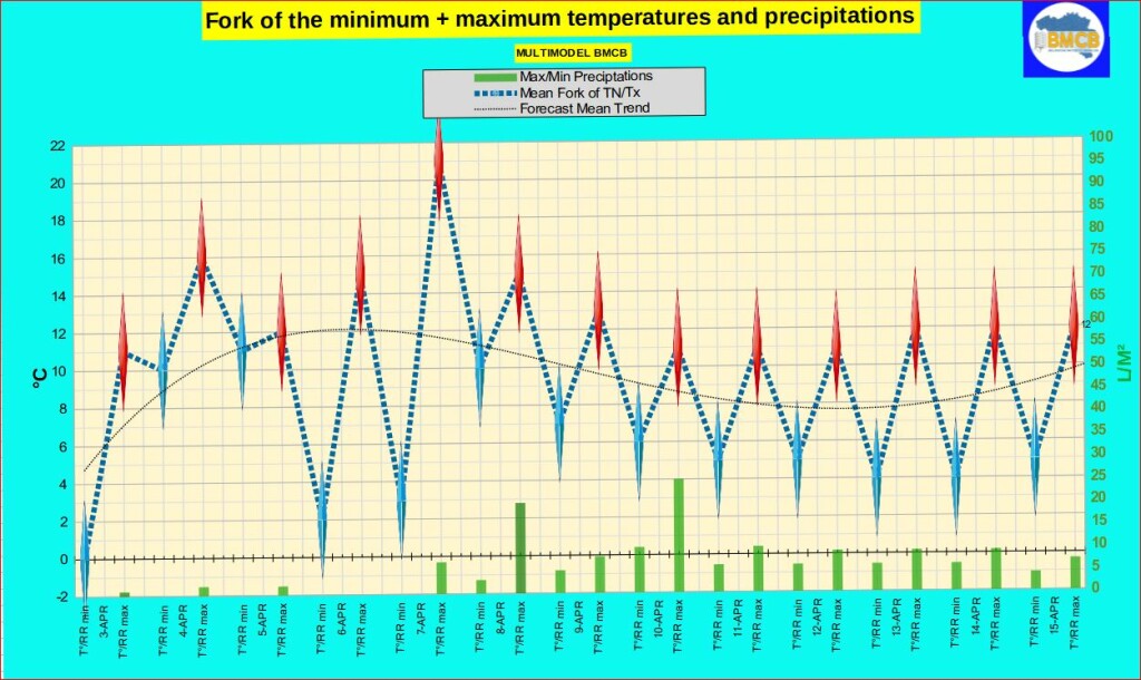 Rond 9 april zou de thermische index opnieuw naar neutraliteit (+1/-1) dalen, wat temperaturen dichter bij de seizoensnormen betekent, meestal tussen 8 en 15°C. 🌦️